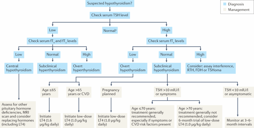 2. Blood Tests: TSH and Free T4 levels are measured first.